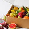 Delight in a vibrant selection of fresh, colorful fruits that brighten any occasion. Enjoy the zesty flavor of Meyer Lemons, the crisp sweetness of Honey Crisp Apples, and the exotic touch of Dragon Fruit. The Orchard Rainbow Fruit Crate features a diverse assortment of fruits, including juicy pears, citrusy mandarins, and a trio of grapes, all beautifully arranged to offer a taste of nature’s bounty in every bite.
