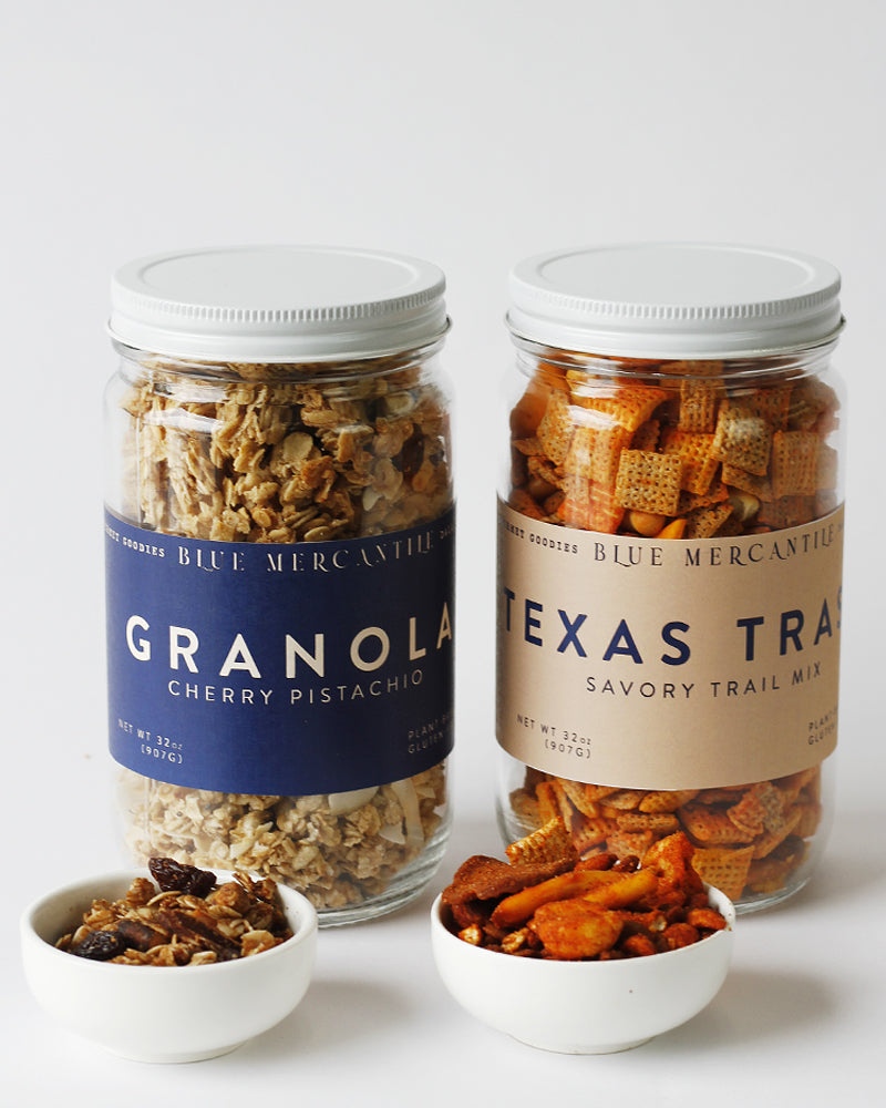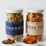 The Goodies Signature Granola & Texas Trash Snack Set brings together two of our signature recipes in a duo made for serious snackers. Our granola balances sweet, tart cherries with crunchy pistachios, pumpkin seeds, coconut strips, and golden oats for a wholesome bite with just the right touch of indulgence. Beside it, our bold Texas Trash mix turns up the flavor with a spicy, tangy kick—loaded with Chex, peanuts, sesame sticks, and corn nuts for a crave-worthy crunch. Packed in generous 32 oz. glass jars, this set celebrates the best of Goodies’ signature creations.